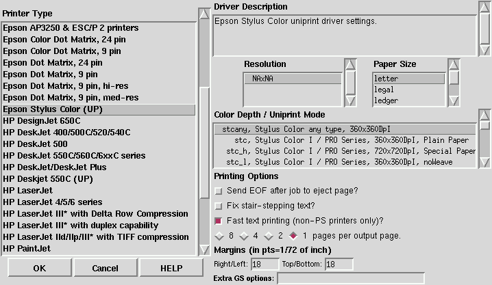 In addition to configuring print queues able to print graphical and PostScript output, you can configure a text-only printer, which will only print plain ASCII text. Most printer drivers are also able to print ASCII text without converting it to PostScript first; simply choose Fast text printing when you configure the filter. Please Note: This only works for non-PostScript printers.