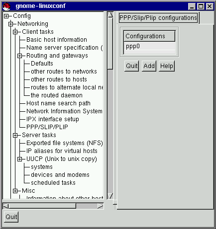 Initially there won't be any configurations specified. When you select Add you will be given a choice between PPP, SLIP and PLIP.