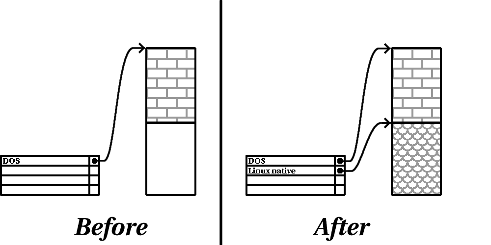 | DOS 16-bit >=32 | 06 | Linux extended | 85 |