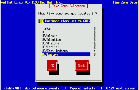 If you wish to set the hardware (CMOS) clock to GMT (Greenwich Mean Time, also known as UTC, or Universal Coordinated Time), select Hardware clock set to GMT. Setting it to GMT means your system will properly handle daylight-saving time, if your time zone uses it.