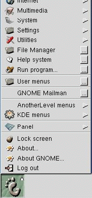 From here, you can start all the included applications and applets for GNOME; you also have access to KDE applications, under KDE menus, and to applications you would find in the window manager AnotherLevel (provided that these applications were installed in the first place).