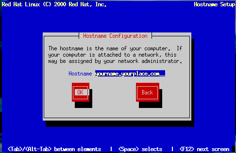 If your computer is not part of a network, you can enter a hostname for your system. Take this opportunity to enter in a name; if you do not, your system will be known as localhost.