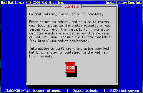 To reboot your newly installed Red Hat Linux system, press Enter.