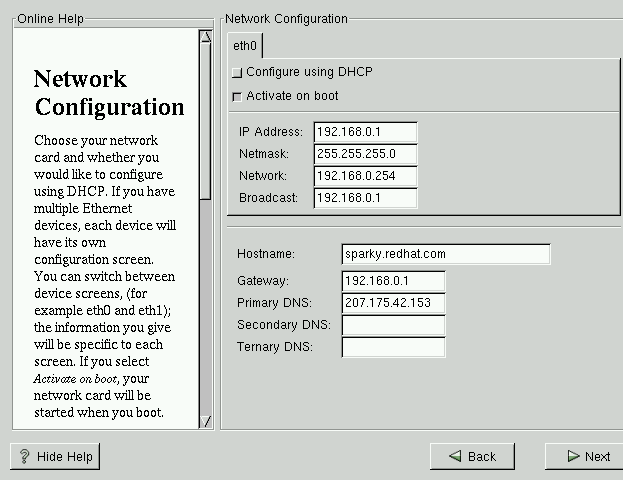 | Prev | Chapter 15. Installing Red Hat Linux via the GUI | Next |