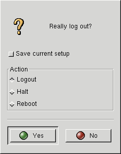 Select any of the options and press the Yes button to continue. Also, select the Save current setup option if you want to save your session. Saving your session will preserve your current configuration of the Panel and save the programs you might have open.