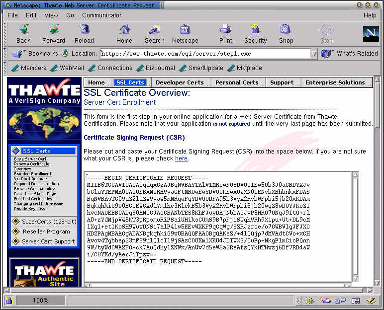 1. Pointez votre navigateur sur l'adresse http://www.thawte.com/certs/server/request.html, où Thawte présente les étapes nécessaires.