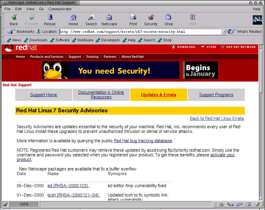 2. Seguite le istruzioni contenute alla voce Solution nella pagina degli errata per aggiornare gli RPM o eseguire gli aggiornamenti tramite l'applicazione RPM. Per maggiori informazioni, consultate la Official Red Hat Linux Customization Guide.