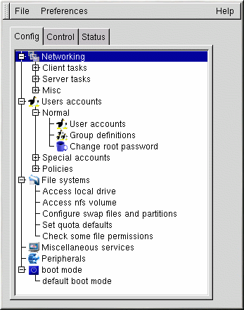 1. Ouvrez Control => Control files and systems => Configure Linuxconf modules.