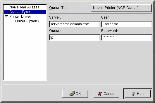 Cliquez sur Queue Type depuis le menu, à gauche, et sélectionnez Novell Printer (NCP) Queue.