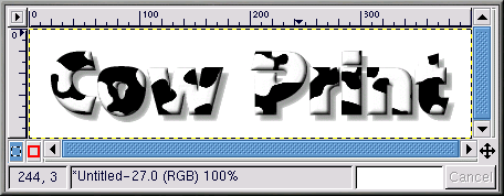 Il modo più semplice per farsi un'idea di cosa possono fare gli Script-Fu è provarlo di persona. Dalla casella degli strumenti fate clic su Xtns => Script-Fu per visualizzare il menu degli Script-Fu disponibili. Per esempio se avete scelto Xtns => Script-Fu => Logos => Bovination, compare la finestra di dialogo Script-Fu: Logos/Bovination. Potete cambiare gli Script Argument; in questo caso, abbiamo scelto un font e modificato il testo. Dopo aver premuto il pulsante OK, GIMP applica una serie di filtri e poi una nuova finestra delle immagini mostra il disegno creato da Script-Fu: Figura 9-32. .