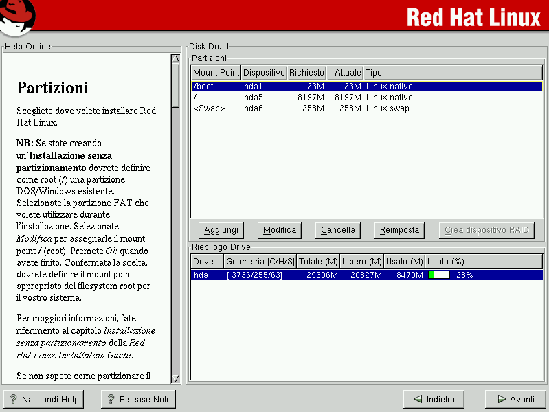 | Indietro | Capitolo 4. Installazione di Red Hat Linux | Avanti |