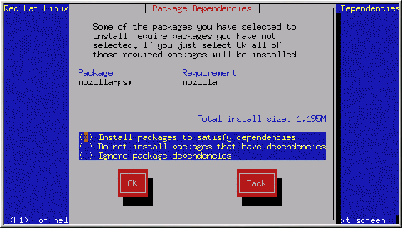 If any package requires another package which you have not selected to install, the program presents a list of these unresolved dependencies and gives you the opportunity to resolve them (see Figure 3-23).