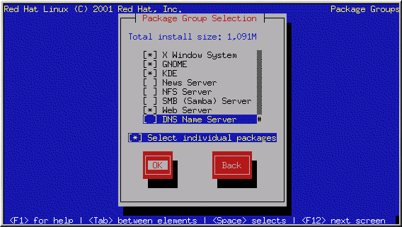 Some packages (such as the kernel and certain libraries) are required for every Red Hat Linux system and are not available to select or deselect. These base packages are selected by default.