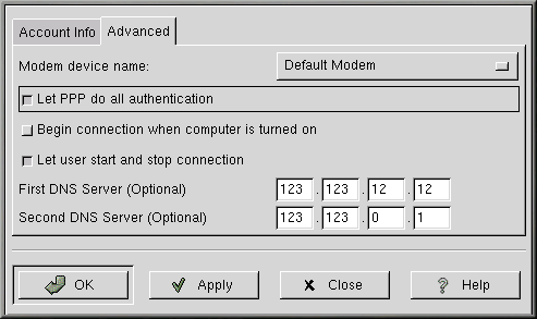 Sowohl GNOME als auch KDE bieten Ihnen nützliche Tools für das Einrichten und Bearbeiten von PPP-Accounts bei Internet-Dienstanbietern. Diese Tools erleichtern Ihnen das Einrichten der Verbindung mit dem Internet beträchtlich - in vielen Fällen benötigen Sie lediglich einen vorhandenen Internet-Zugang, ohne Ihr System groß konfigurieren zu müssen.