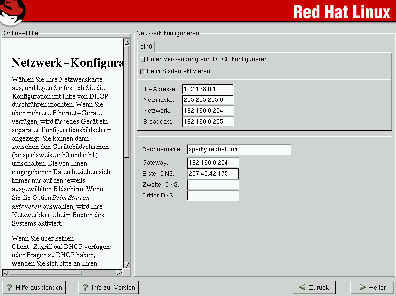 | Zurück | Kapitel 4 Installation von Red Hat Linux | Vor |