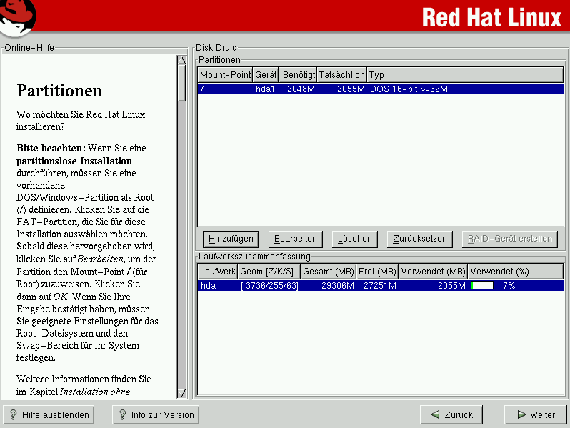 | Zurück | Anhang B Installation ohne Partitionieren | Vor |