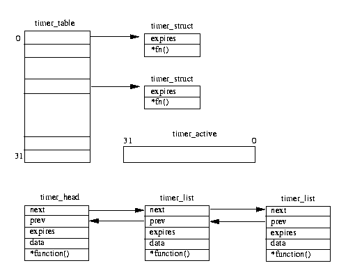 timer_list データ構造体の連結リストを使用する。リストの要素は、