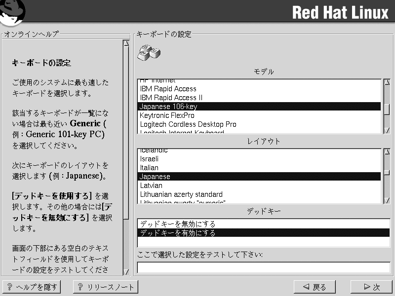 Red Hat Linux¤ò¥¤¥ó¥¹¥È¡¼¥ë¤·¤¿¸å¤Ë¡¢¥¡¼¥Ü¡¼¥É¤ÎÀßÄê¤òÊѹ¹¤¹¤ë¤Ë¤Ï¡¢root¤Ç ¥í¥°¥¤¥ó¤·¤Æ¡¢/usr/sbin/kbdconfig¥³¥Þ¥ó¥É¤ò»ÈÍѤ·¤Þ¤¹¡£ ¤¢¤ë¤¤¤Ï¡¢root¥×¥í¥ó¥×¥È¤Çsetup¤ÈÆþÎϤ·¤Æ²¼¤µ¤¤¡£ root¤Ë¤Ê¤ë¤Ë¤Ï¡¢¥·¥§¥ë¥×¥í¥ó¥×¥È¤Çsu -¤ÈÆþÎϤ·¡¢ |