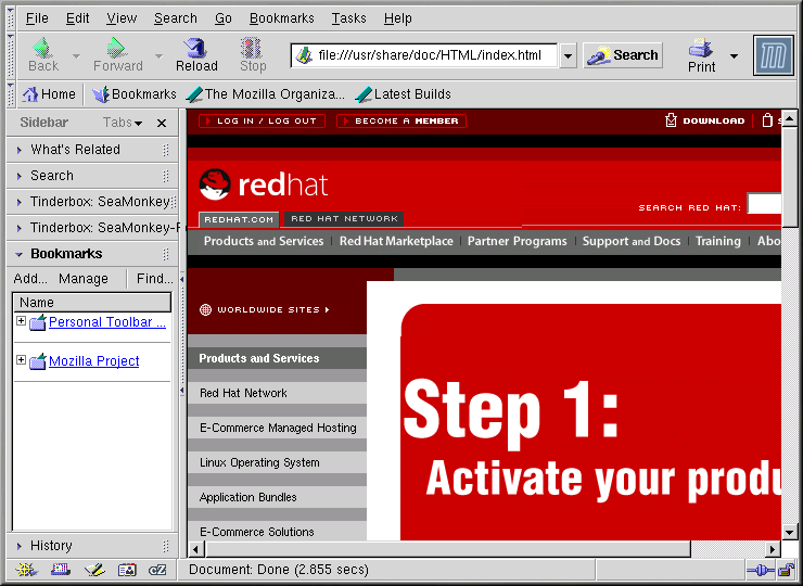 Once you have configured your user profile, you are ready to use the browser. To access Mozilla in GNOME, click on the Mozilla launcher on the panel or go to Main Menu => Programs => Internet => Mozilla. In KDE, go to Main Menu => Internet => Mozilla.