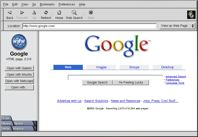When you are viewing a Web page, Nautilus gives you additional browser choices in case you want to use a full-featured Web browser. To select a different browser, click one of the buttons in the sidebar.