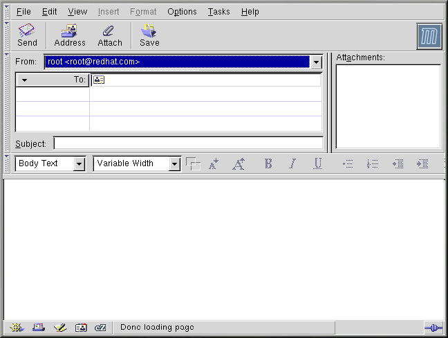 You can also launch Mozilla Mail Message from the GNOME main menu by going to Programs => Internet => Mozilla Mail Message.