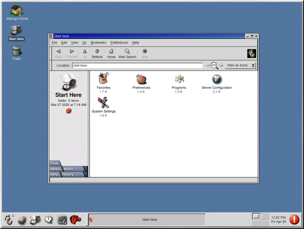 The GNOME desktop works in the manner you might expect it to when working with other operating systems. You can drag and drop files and application icons to areas that are easily accessible. You can add new icons for files and applications to the desktop, panel, and file manager. You can change the appearance of most of the tools and applications, as well as changing system settings with provided configuration tools.