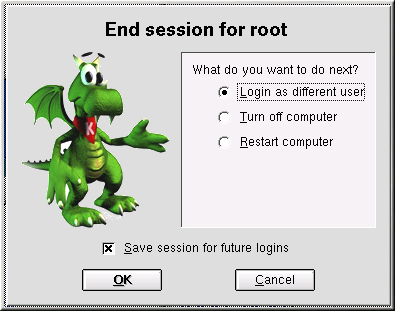 If you chose KDE as your default desktop environment during your installation of Red Hat Linux, your logout screen will look like Figure 3-10: