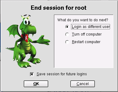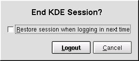If you chose KDE as your default desktop environment during your installation of Red Hat Linux, your logout screen will look like Figure 3-10: