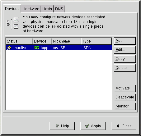 After configuring the ISDN device, it appears in the device list as an ippp device as shown in Figure 6-4.