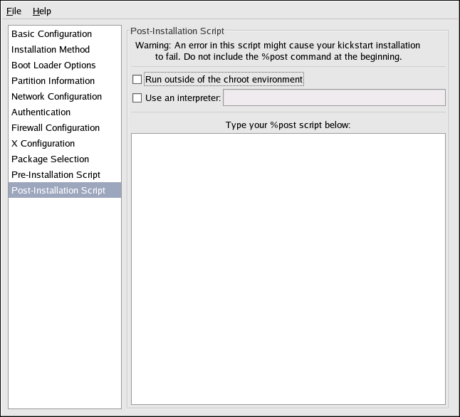 | Prev | Chapter 7. Kickstart Configurator | Next |
