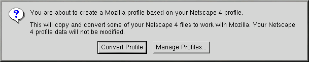 If you click Convert Profile, your prior Netscape bookmarks and preferences will be converted to a Mozilla profile for you.