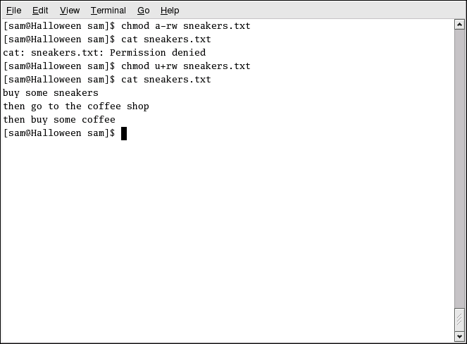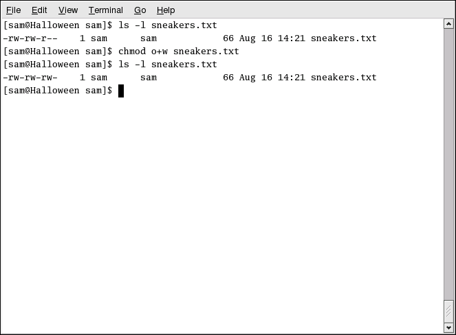 [sam@halloween sam]$ chmod u+rw sneakers.txt