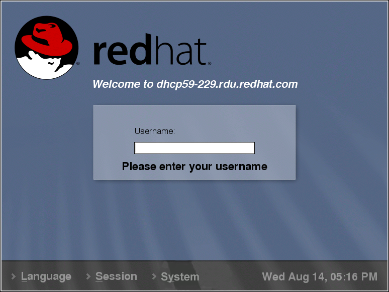 During installation, if you selected graphical as the login type, you will see a graphical login screen as shown in Figure 1-6. Again, unless you have chosen to give your machine its own hostname, which is primarily used in a network setting, your machine will probably be called localhost.