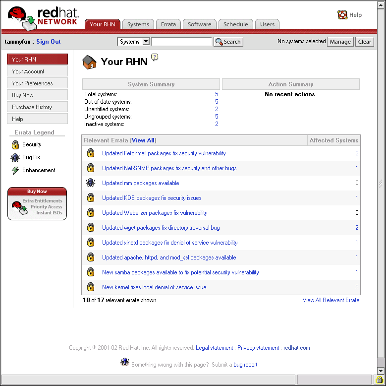 Red Hat Network è una soluzione Internet per la gestione del sistema Red Hat Linux o di una rete di sistemi Red Hat Linux. Tutti gli avvisi riguardanti la sicurezza, la risoluzione di bug e l'ottimizzazione (collettivamente conosciuti come Avvisi di Errata) possono essere scaricati direttamente da Red Hat usando l'applicazione indipendente Red Hat Update Agent oppure tramite il sito Web di RHN all'indirizzo http://rhn.redhat.com/.