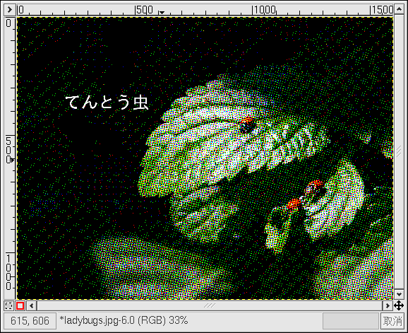 例えば、仮にある写真を、まるで新聞から切りぬいたかのごとく 見えるように修正したいとします。これを実行するには、イメージを 右クリックして、 フィルタ => 歪み => 新聞印刷... と進みます。スライダーを使用してインチ単位の線の数量 を選択します。目的の数量を決定してイメージを造成する準備ができたら、 OKを 押します。GIMP は新しい効果を使用してイメージを造成します。 図11-7は、新聞印刷... フィルタが適用された後のイメージの例を示しています。