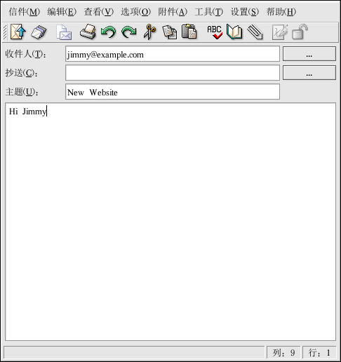 KMail 是 KDE 的电子邮件工具。它有一个和 Evolution 很相似的直觉化的图形界面。这个界面允许你使用图形化界面来收发电子邮件。要打开 KMail,点击「主菜单」 => 「互联网」 => 「更多互联网应用程序」 => 「KMail」。