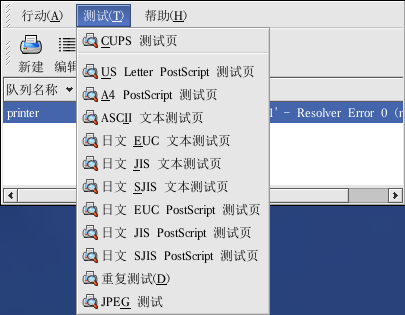 配置了打印机后,你应该打印一张测试页来确定打印机能够正常运行。要打印测试页,从打印机列表中选择你想试验的打印机,然后从「测试」拉下菜单中选择合适的测试页。